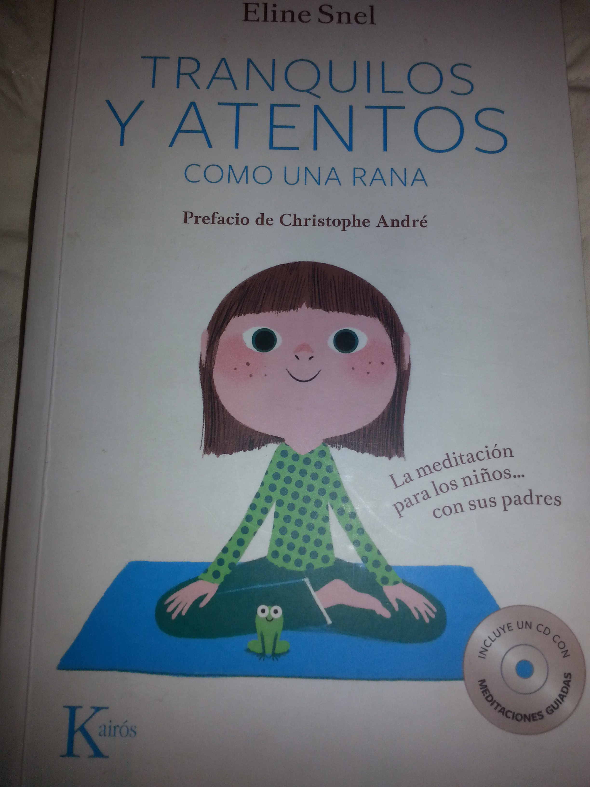 El título «Tranquilos y atentos como una rana» ayuda a que los niños y niñas puedan comparar el estado de tranquilidad y sosiego, con la manera de estar y desenvolverse una rana. Se trata de un libro con CD que da información a las familias y profesores de las características del pensamiento. A la vez que ayuda a pequeños y mayores a darnos cuenta de nuestro estado emocional actual y nos da pistas de cómo conseguir un estado de tranquilidad y sosiego. En las grabaciones hay una que se llama «Botón de pausa» A mí esta grabación me ayuda aprender a parar varias veces al día y darme cuenta de lo que sucede en mí (dentro y fuera). Ayuda a tener conciencia de uno mismo, de los pensamientos y los sentimientos que nos surgen. Nos añade un conocimiento sobre nosotros, que el ritmo del día a día no nos deja.
